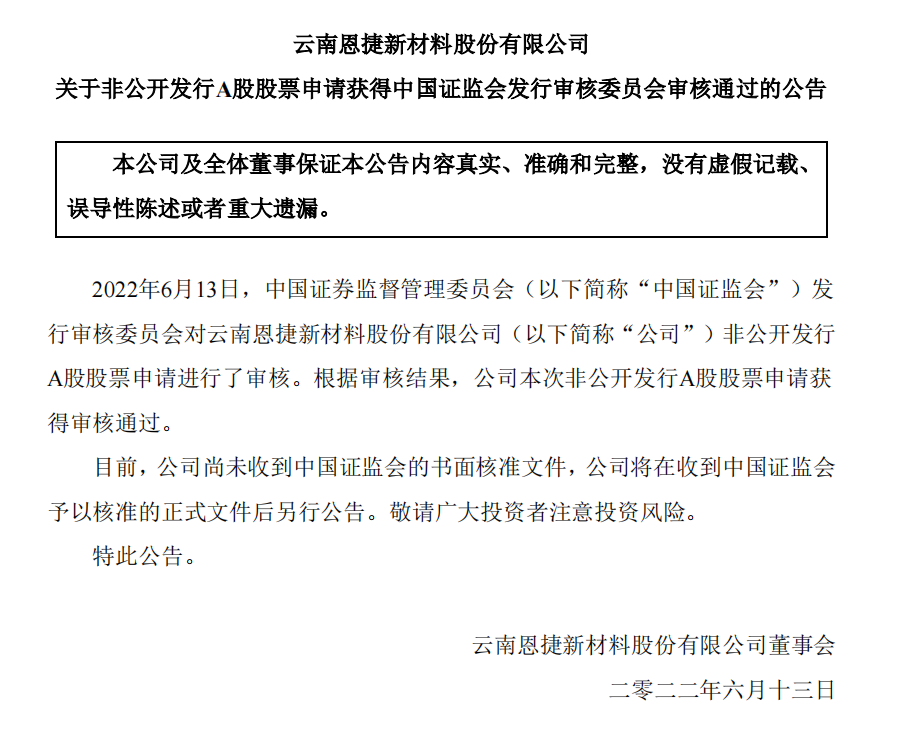 本次非果真刊行申请获批,, ,,,,有利于增进公司的恒久可一连生长,, ,,,,为进一步提升市场竞争力提供了有力包管,, ,,,,将助力牢靠公司全球锂电池隔膜行业的龙头职位。。 。。。。