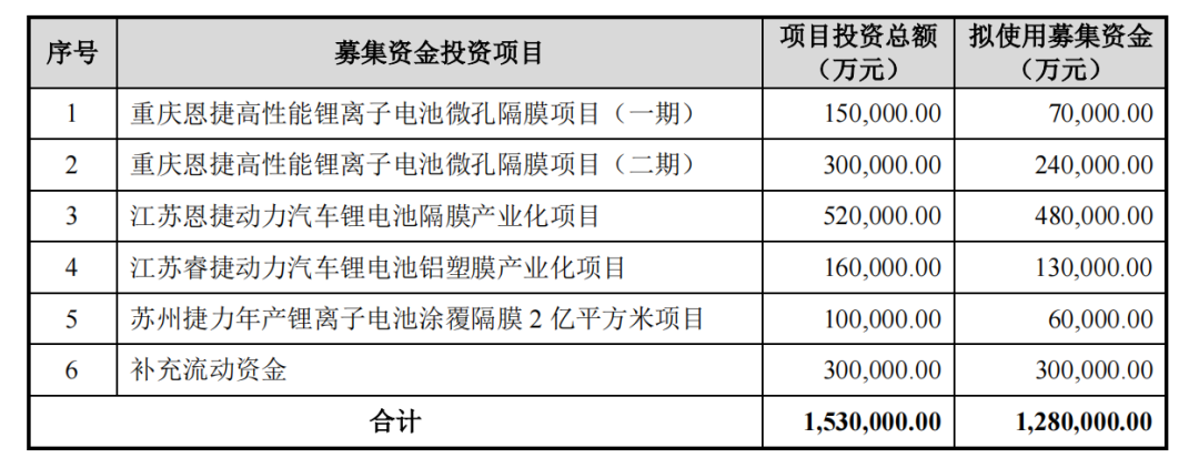 2021年11月,, ,,,,beats365股份披露非果真刊行预案,, ,,,,拟向不凌驾35名特定投资者非果真刊行股票数目不凌驾267,721,996股,, ,,,,预计募资不超128亿元,, ,,,,将用于重庆beats365高性能锂离子电池微孔隔膜项目、江苏beats365动力汽车锂电池隔膜工业化项目、江苏睿捷动力汽车锂电池铝塑膜工业化项目、苏州捷力年产锂离子电池涂覆隔膜2亿平方米项目及增补流动资金。。 。。。。